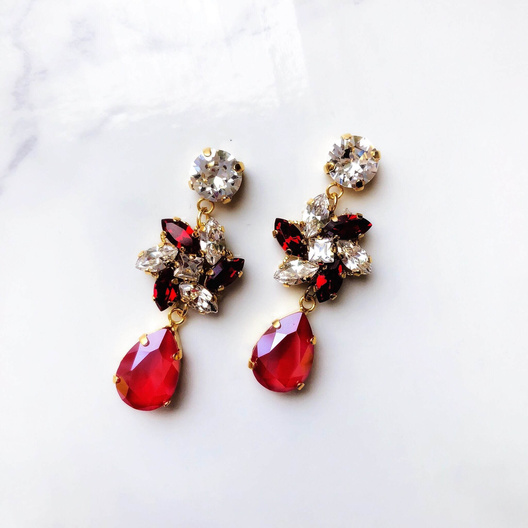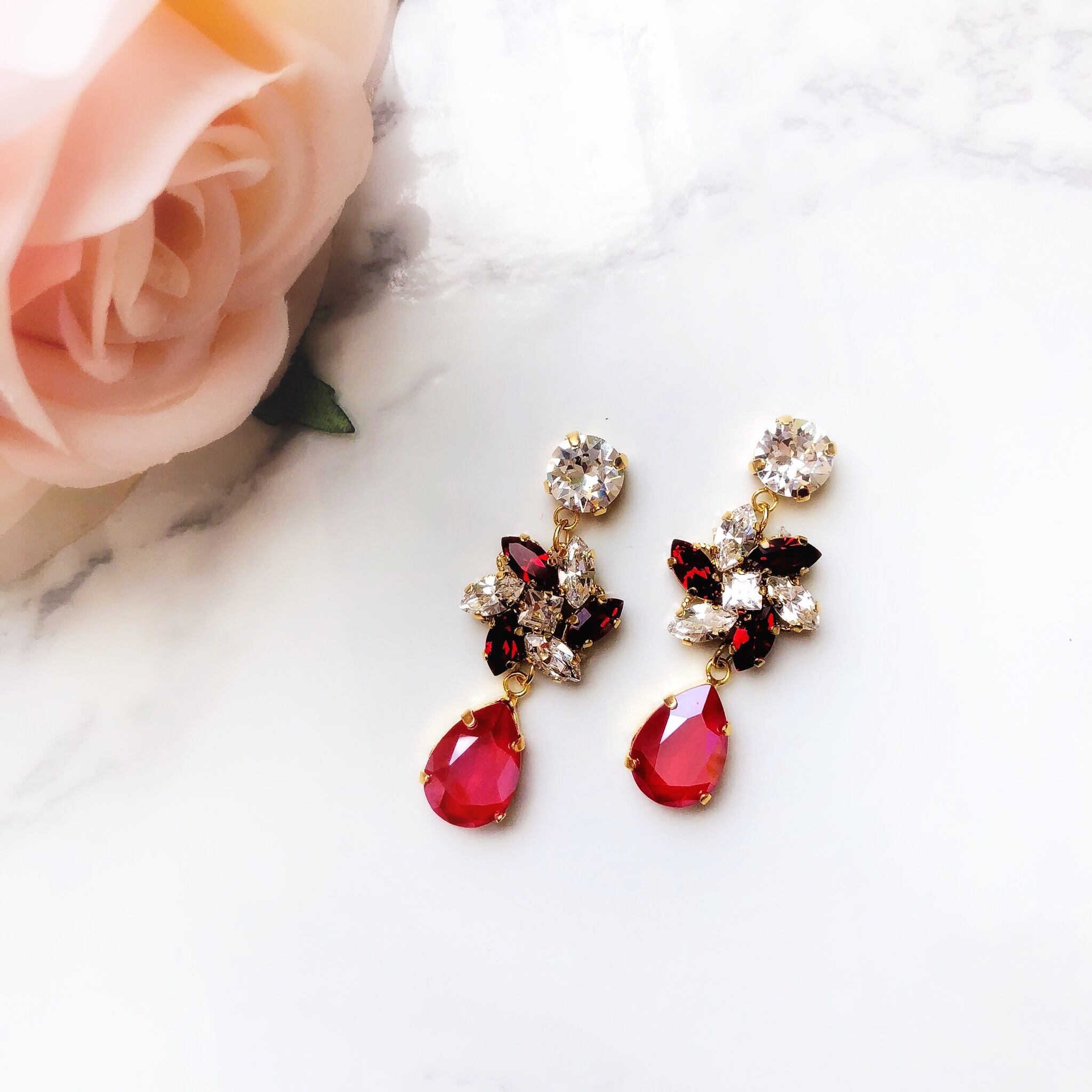 【受注製作】お花としずくのアクセサリー(赤) w-8