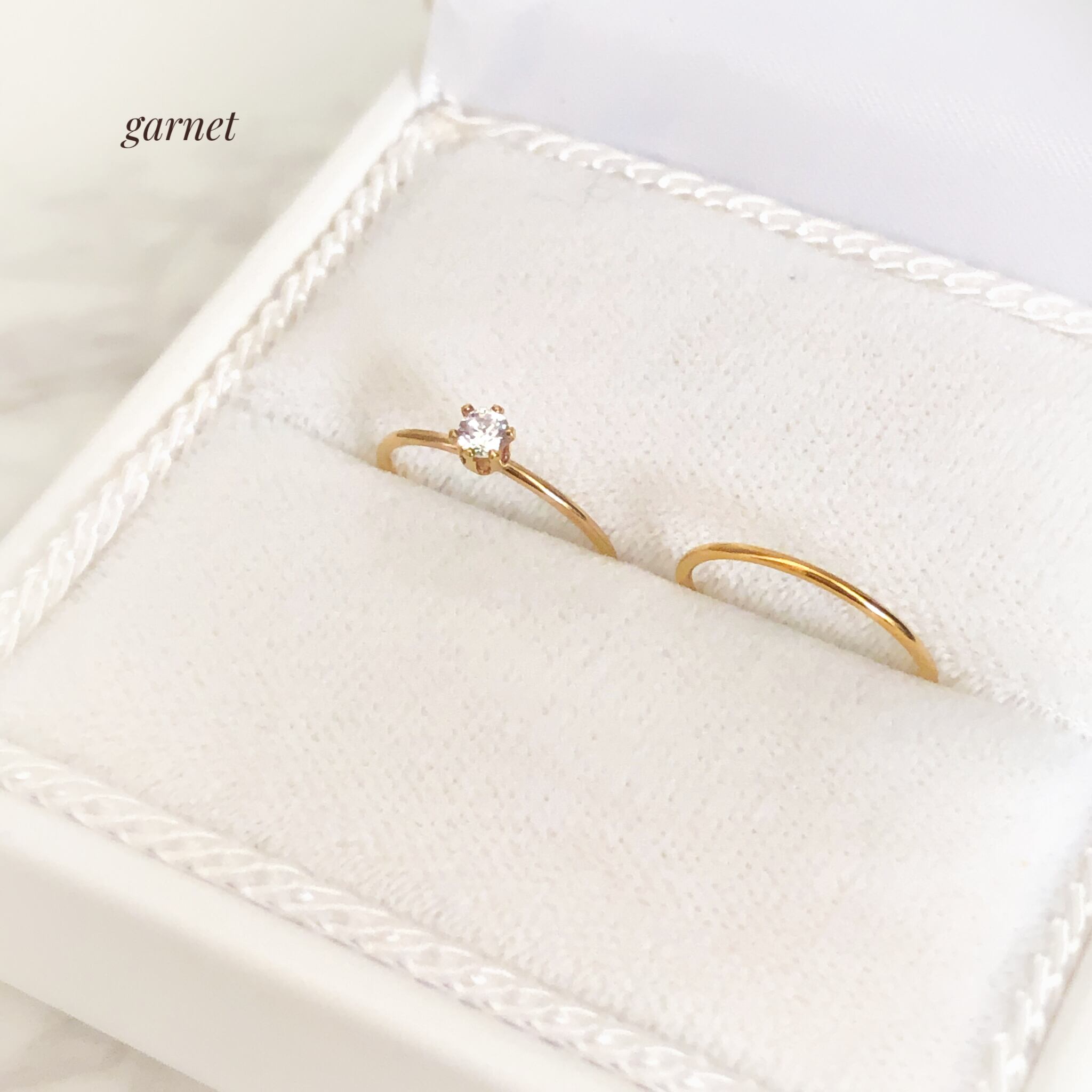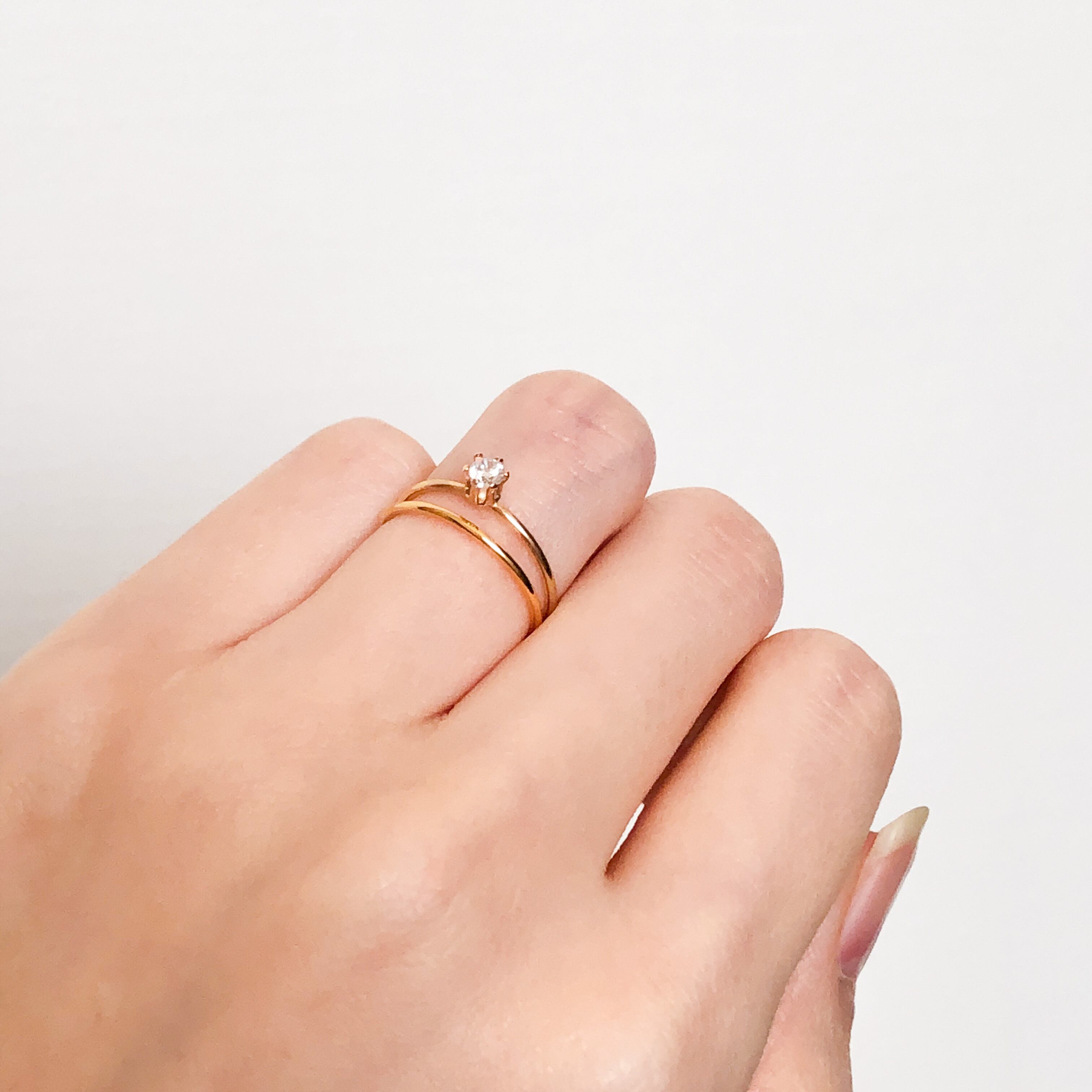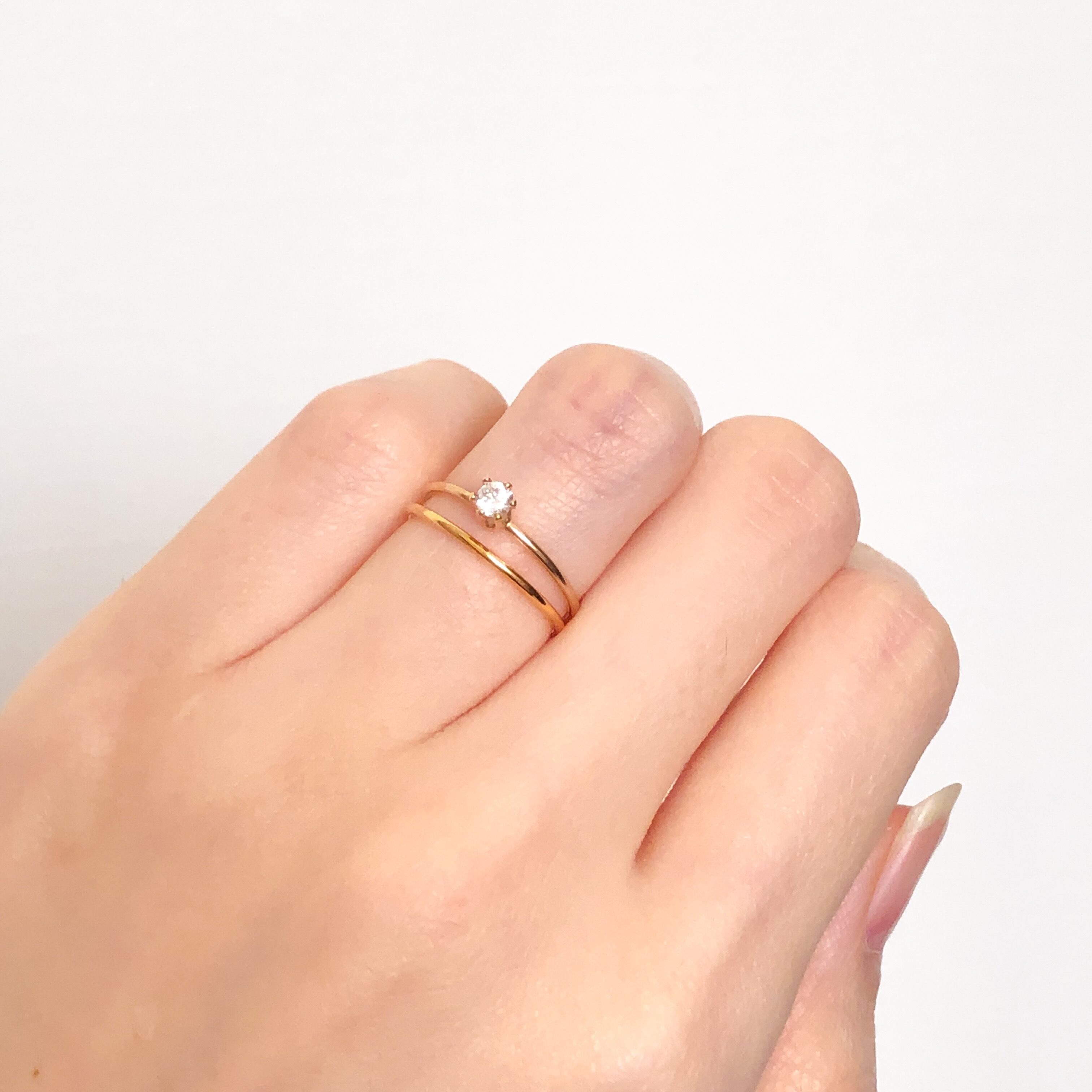 【14kgf】 <2点セット>華奢なシンプルリング ノーマル&キュービックジルコニア