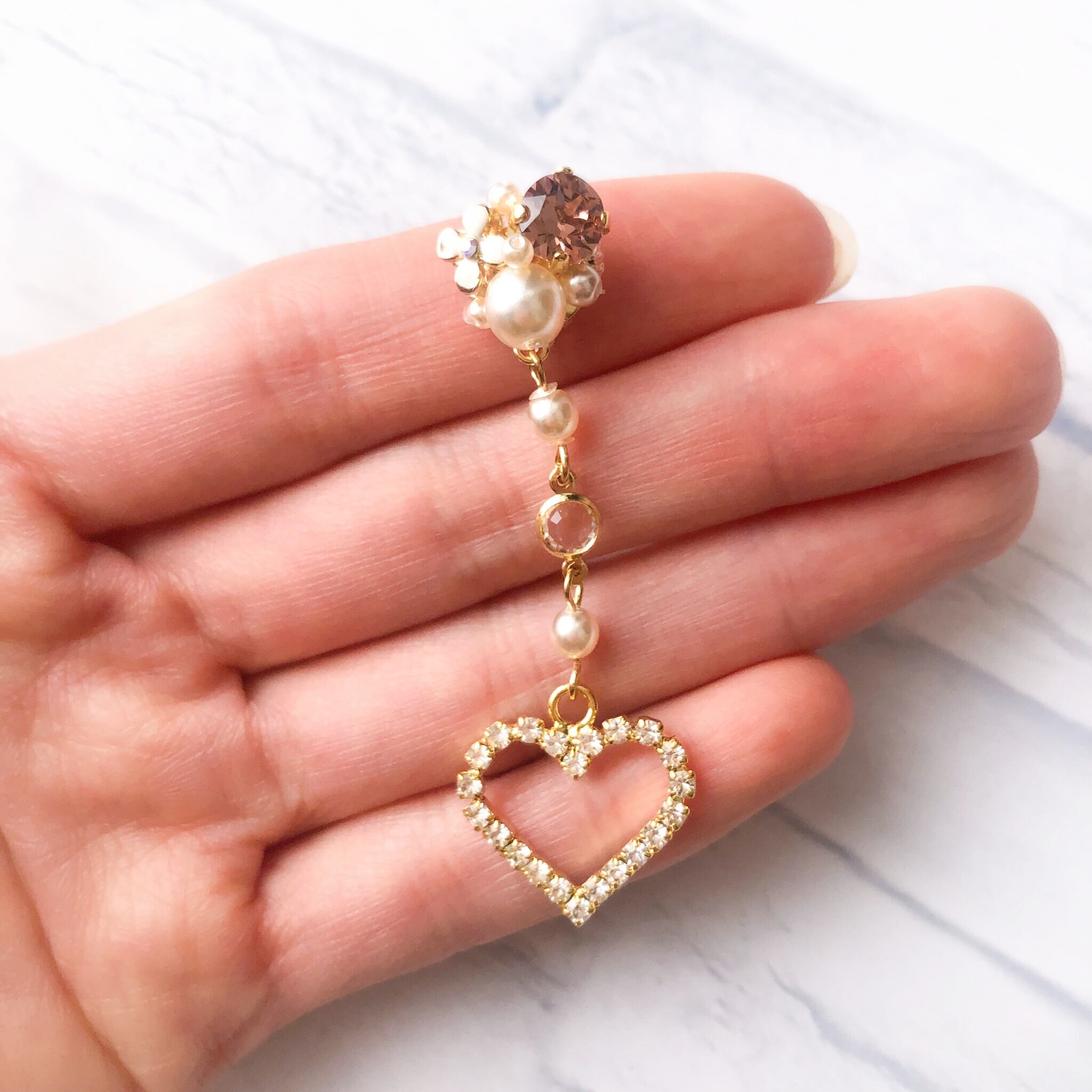 キラキラハートのチャームが付いた長めのピアス/イヤリング♡