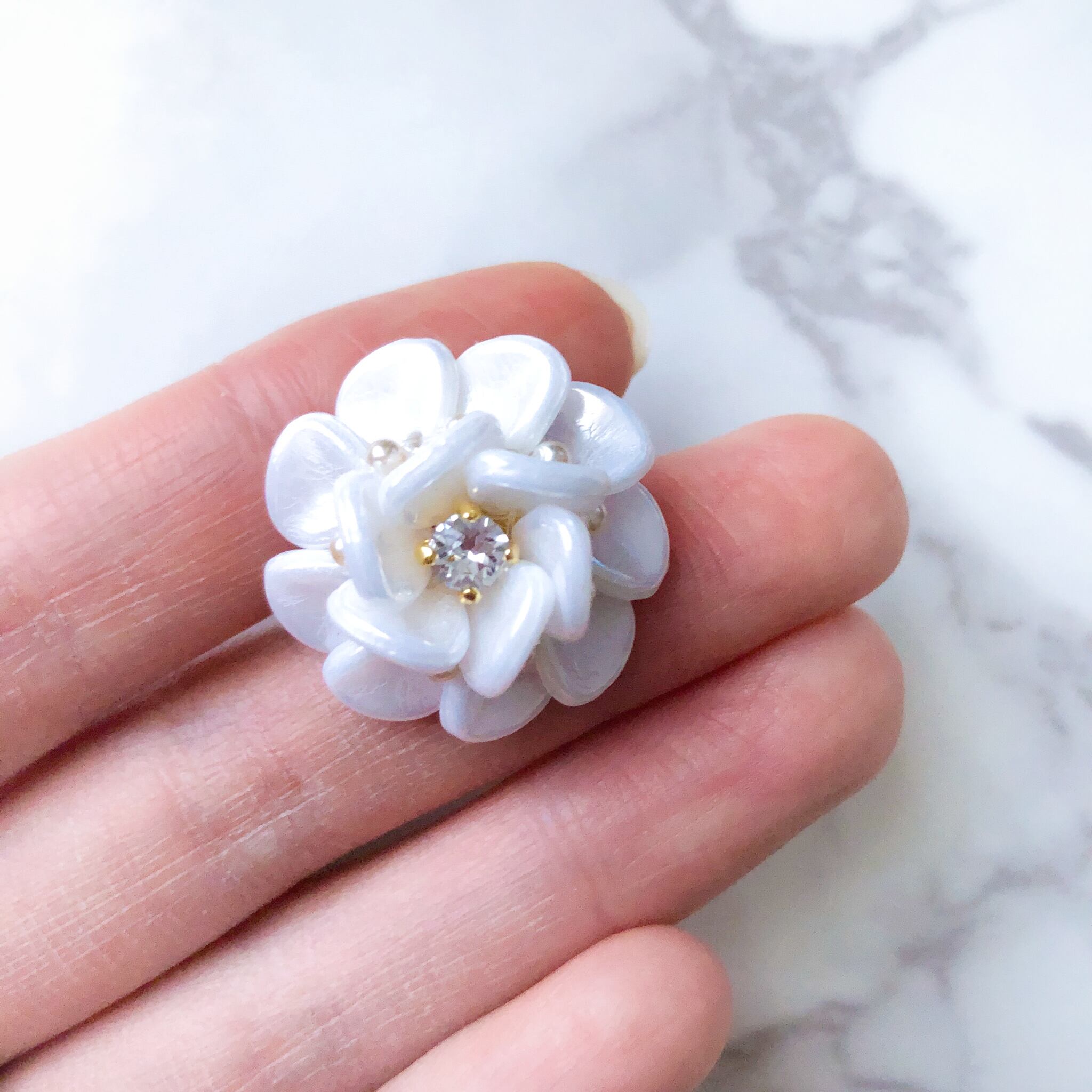 光が当たるとお花の真ん中のビジューがキラッと輝いて