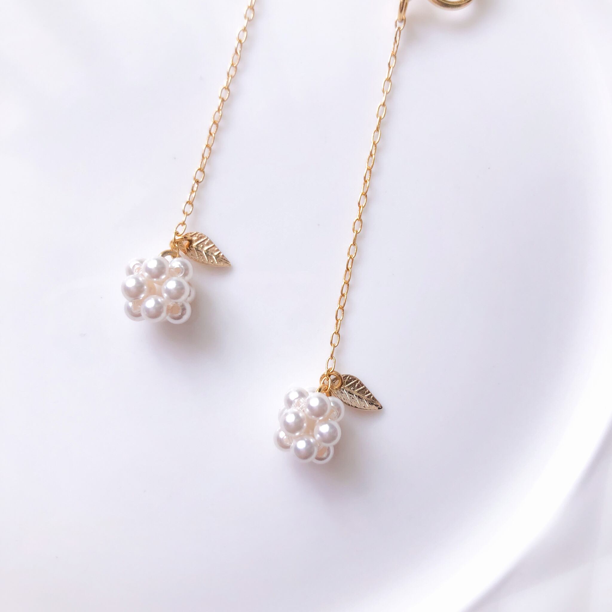 木の実モチーフ パールボールとリーフのピアス/イヤリング 228