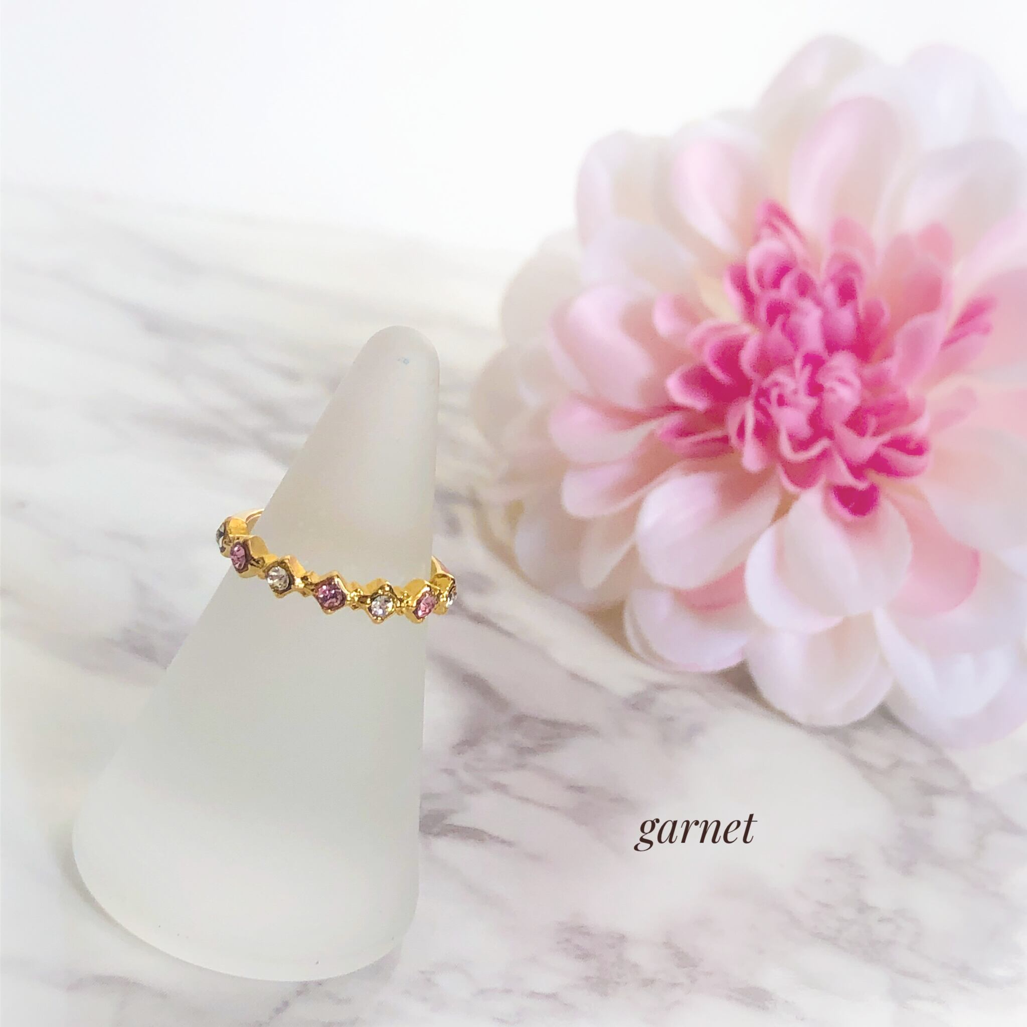 スワロフスキーエレメントを使用したキラキラと輝くピンキーリング♡