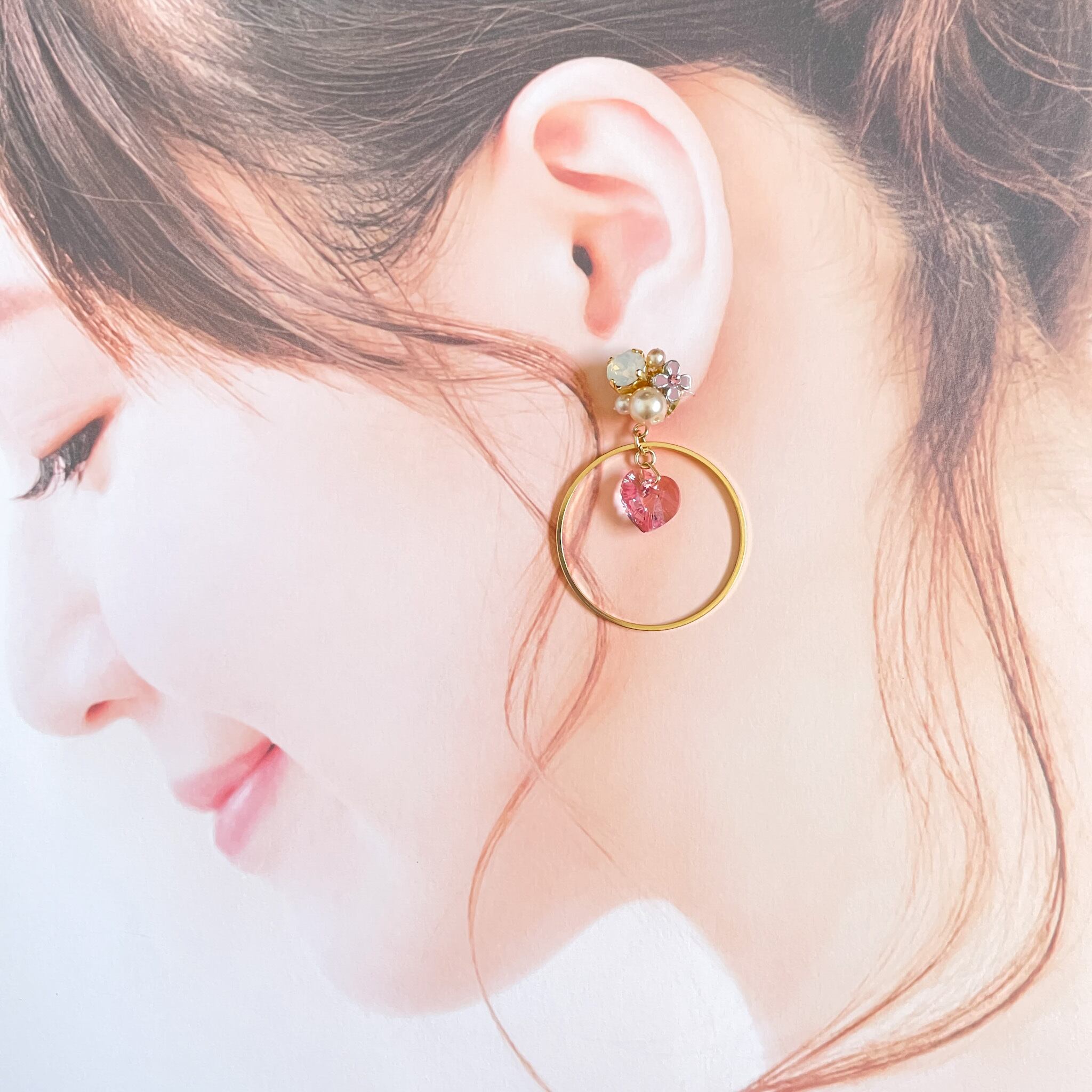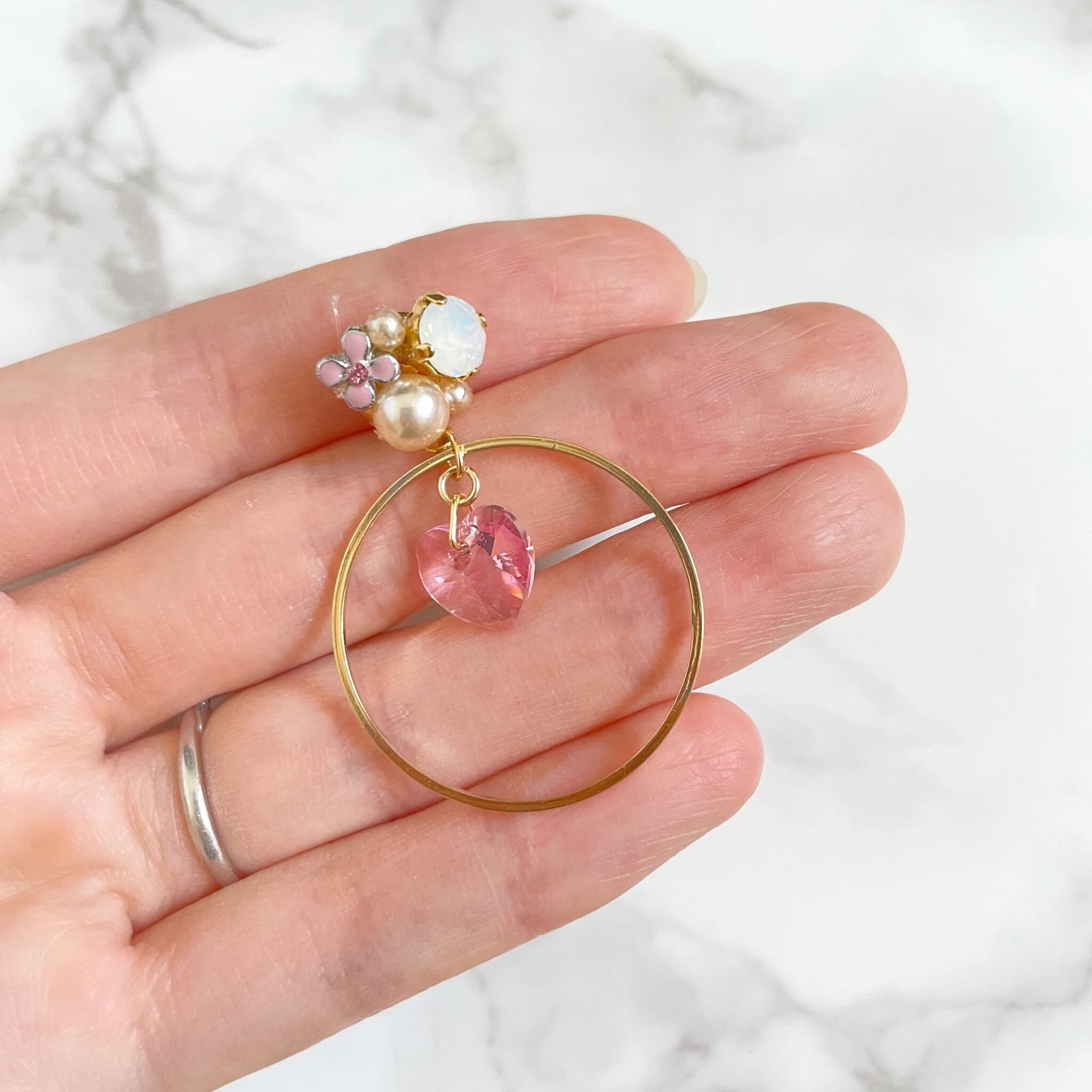 下には大きめのフープとハートビーズがついていて