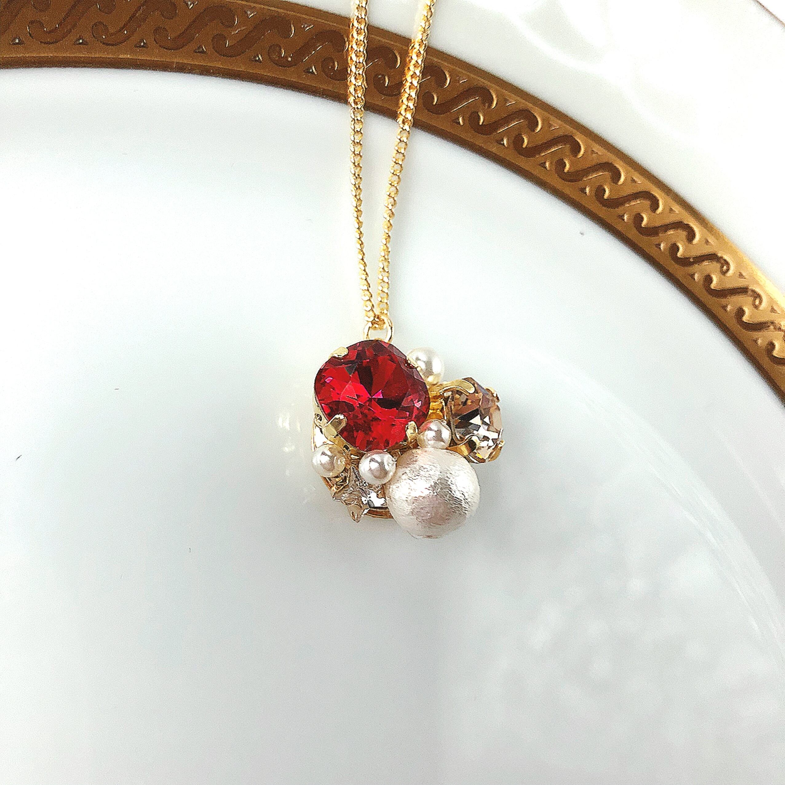 明るめの赤いスワロフスキー・クリスタルがキラキラと輝きます。