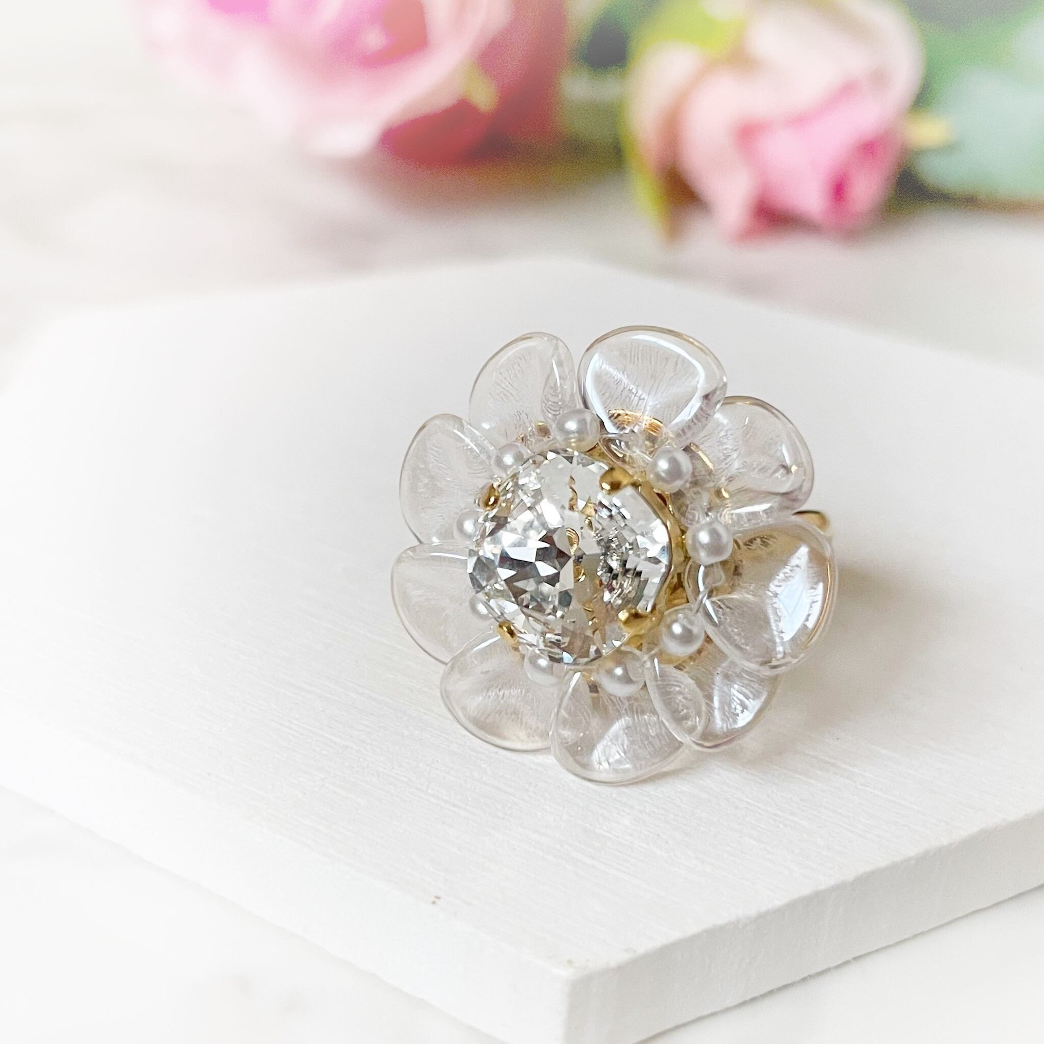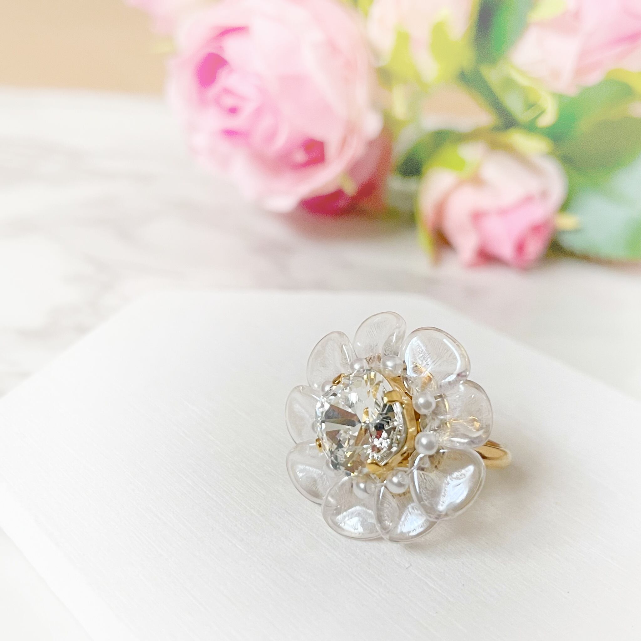 白/ 花/ フラワー/ 大人可愛い/ キラキラ/ 可愛い/ 女子/ 清楚/ 上品/ フォーマル/ パーティー/ 大人女子/ パール/指輪/リング/スワロフスキービジュー/授業参観/デート/女子会/デート/ママ友/褒められる