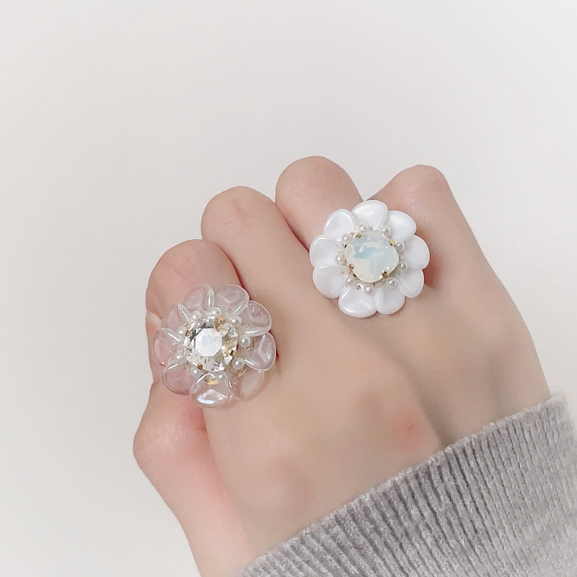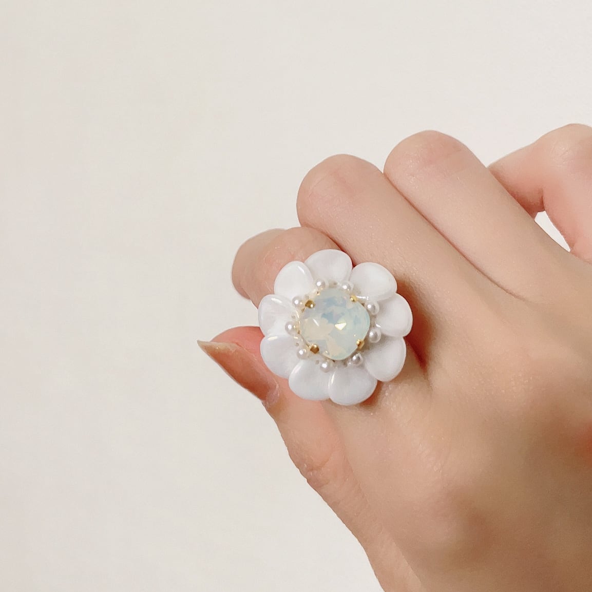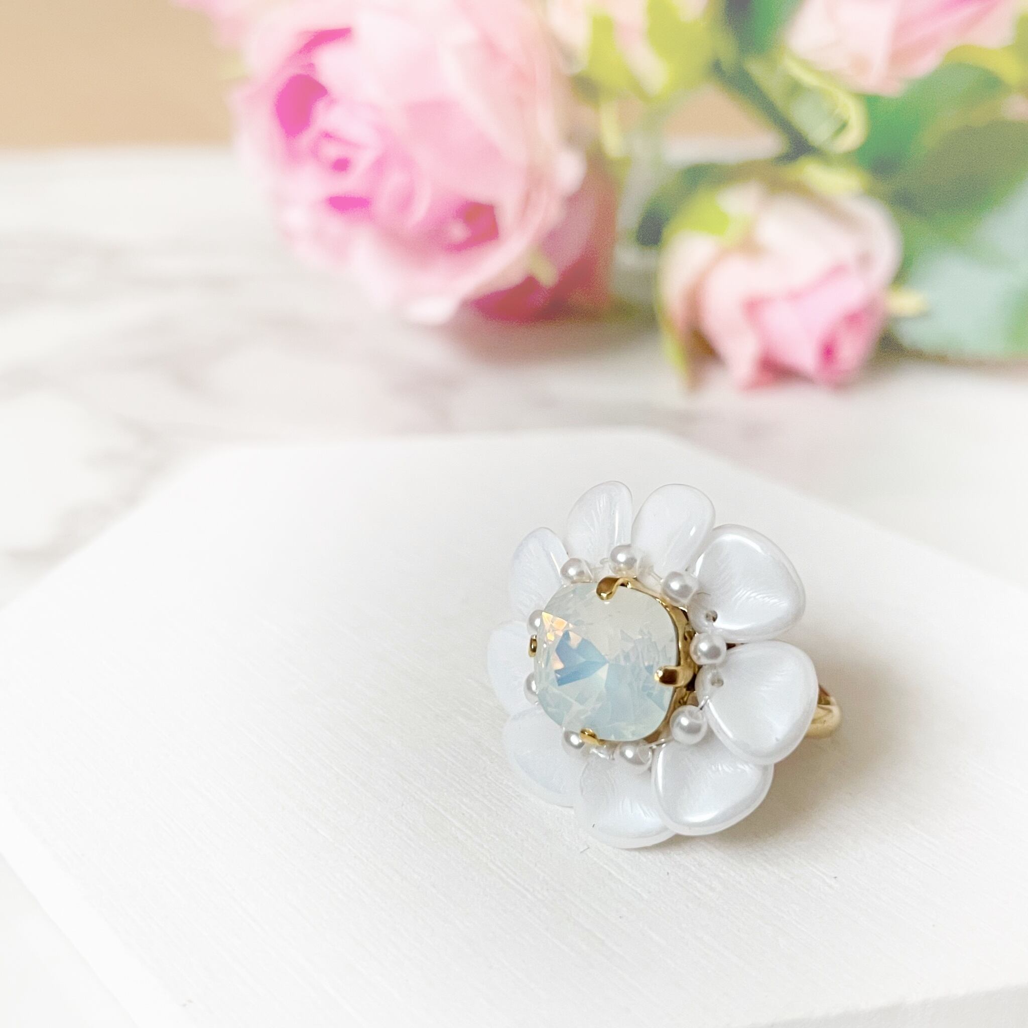 フラワーリング② 白×ホワイトオパール 329